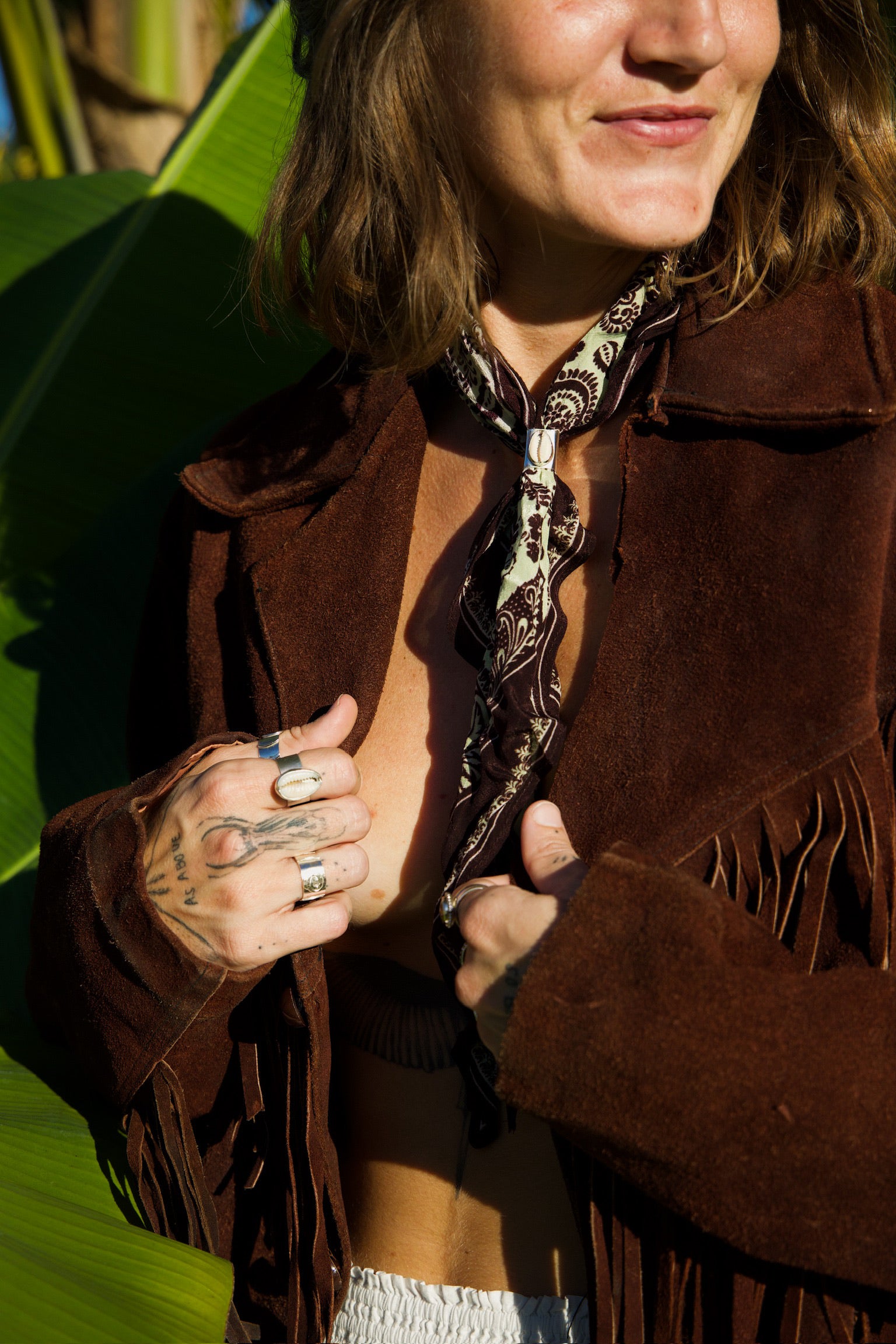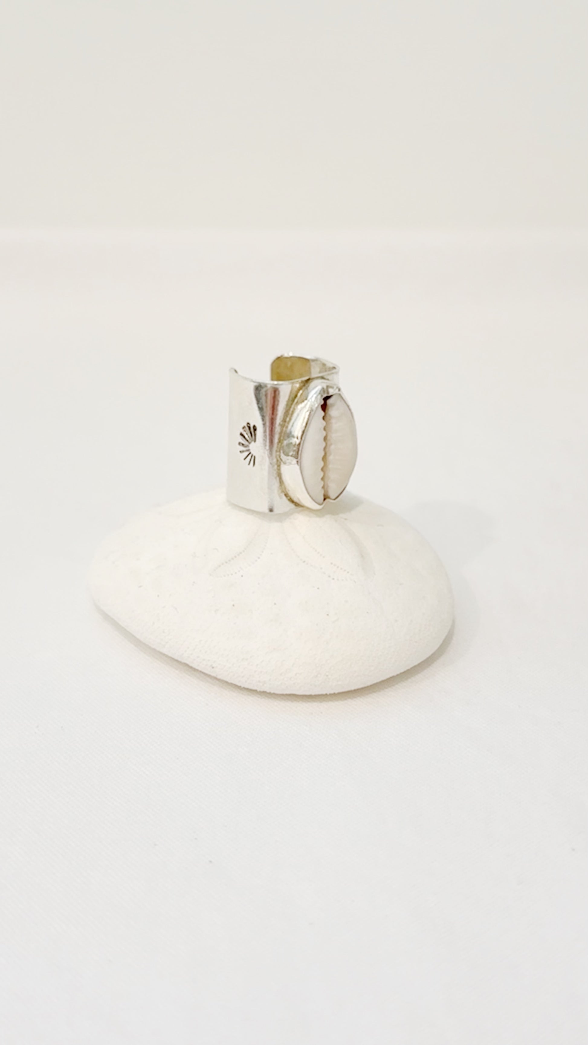 This sterling silver braid cuff / bandana slide is inspired by the ocean—finished with a real cowrie shell and hand-stamped patterns for a one-of-a-kind, beach-boho look. Perfect for adding a touch of coastal magic to braids, bandanas, or scarf styles.