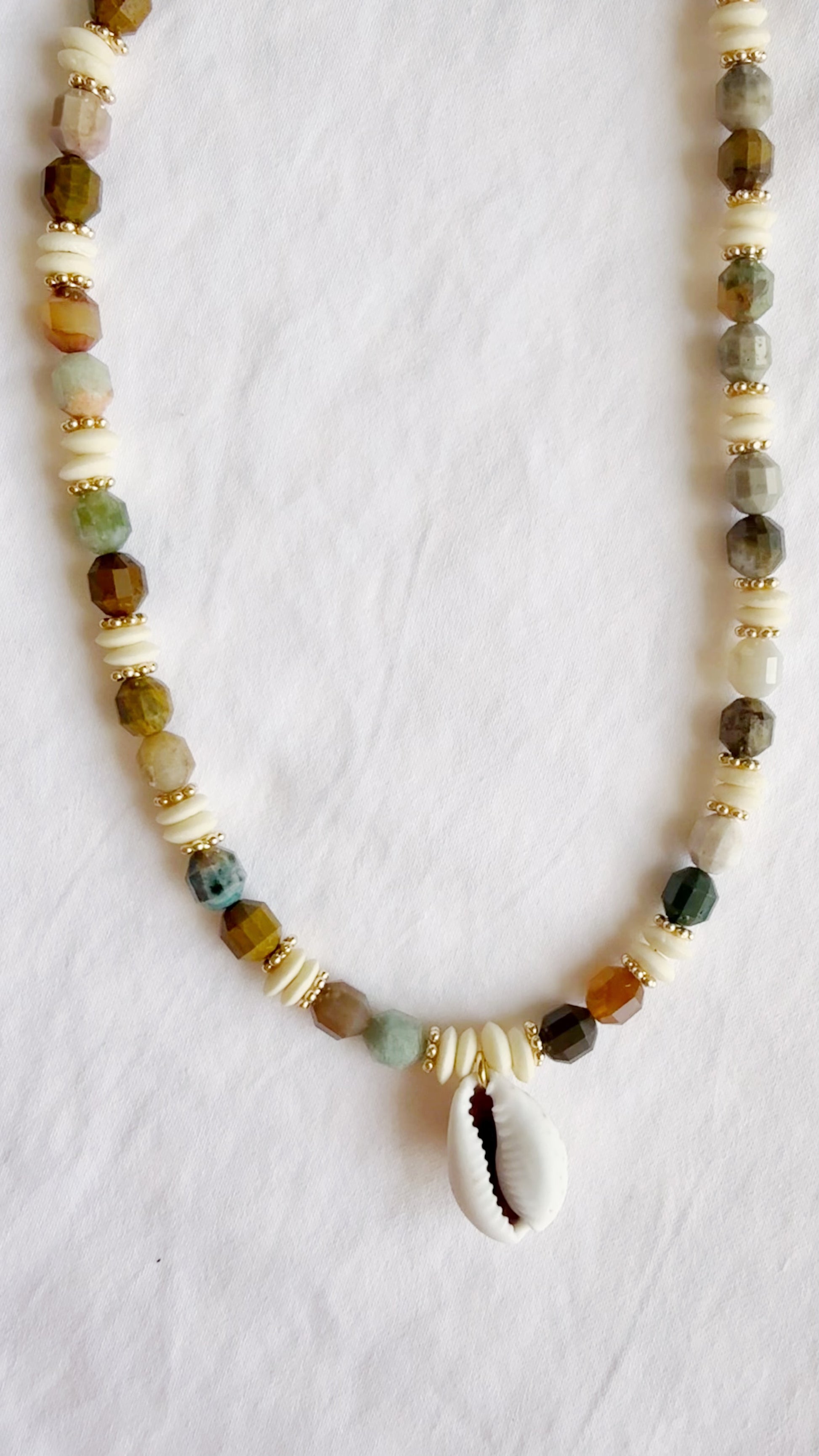 Ocean Jasper Prism and bone beads with little gold flower detail.