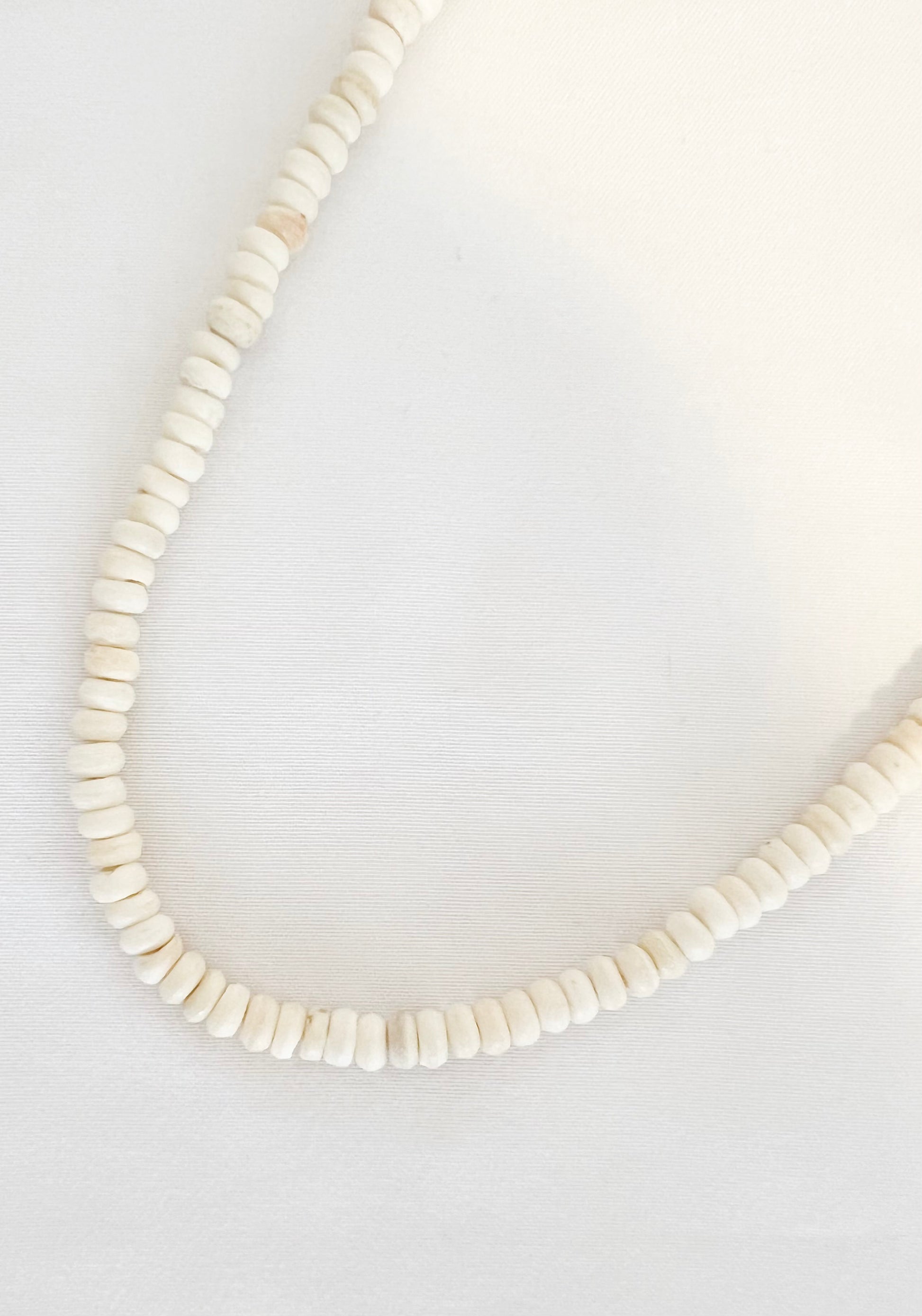 Our stunning bone bead necklace, mirrors all the natural beauty! The earthy tones and organic textures capture the essence of seaside serenity, making this necklace the perfect accessory for any occasion! You can wear it alone or stack it up!
