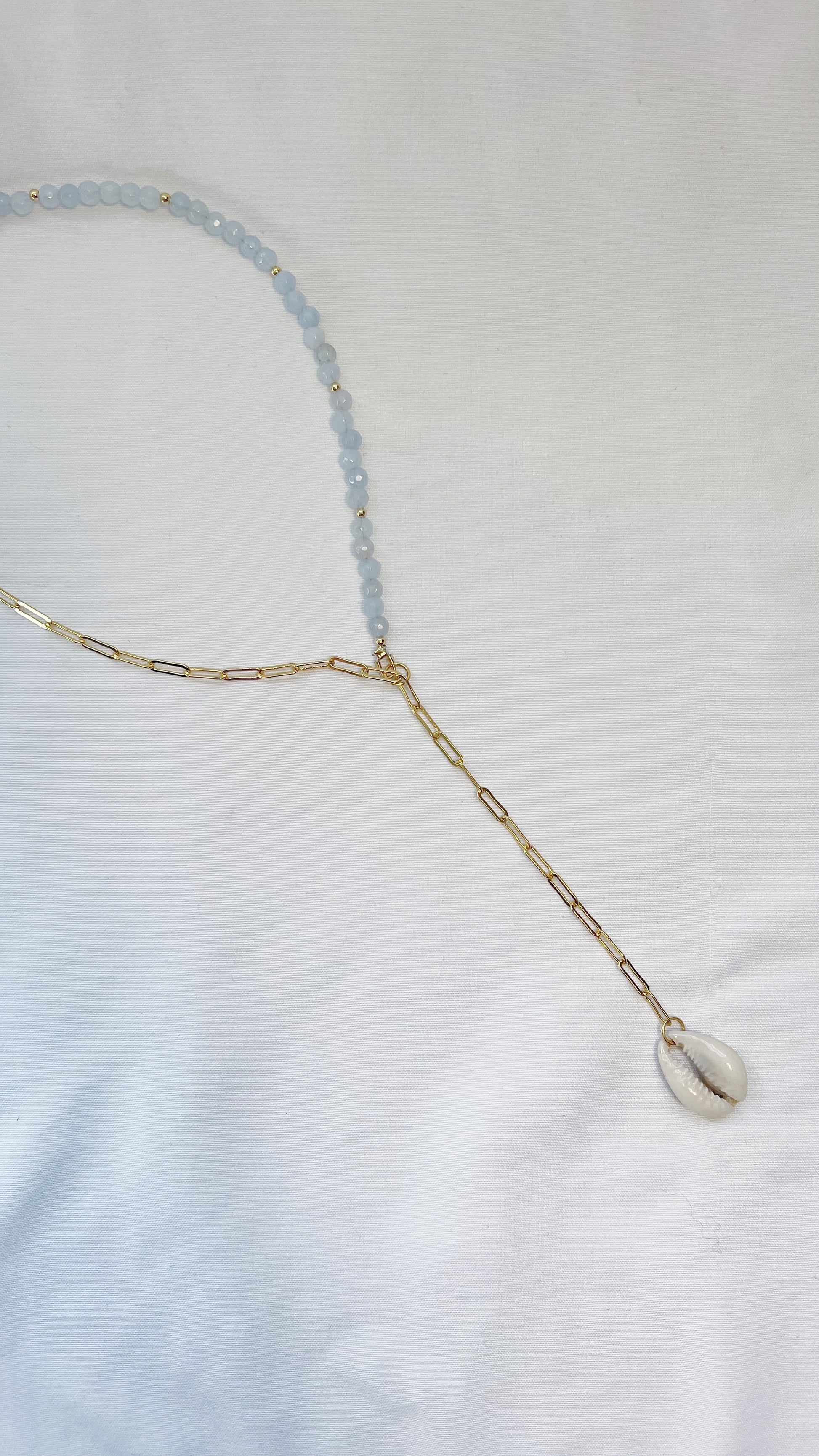 Get ready to make a statement with our new 18k gold chain and blue moonstone beaded necklace! Handcrafted with love, this stunning piece combines the ethereal beauty of moonstone with the beachy charm of a delicate cowrie shell accent.